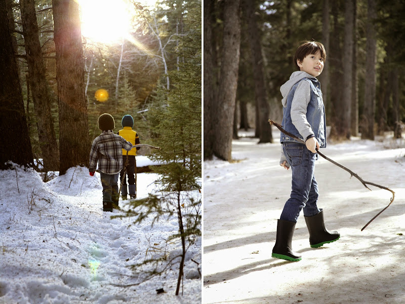 Living in Canada, we've come to expect long cold winters. Relentless amounts of snow and months of bundling up before stepping foot outside. However, living in Calgary, we get little breaks every so often called Chinooks. Now these come every so often, its a warm dry wind that blows from the Rocky Mountains. And when they do, you can bet people come out of hibernation for the day or two that it lasts! We've attempted to go out exploring new parts of forests around here when we were experiencing a chinook this winter. Here are some photos of my adventures with my boys.